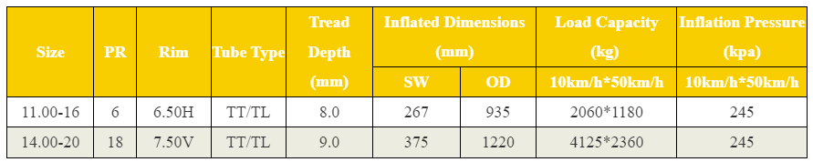 2) Wide tread, round shoulder and streamlined pattern design providing stable ride, good floating force, excellent steering ability and uniform tread wear