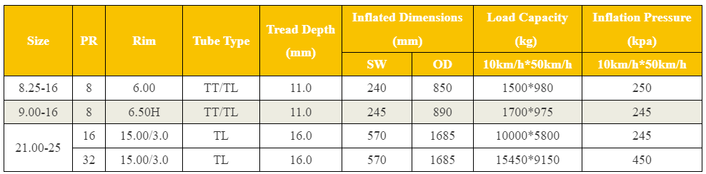 2) Wide tread, round shoulder and streamlined pattern design providing stable ride, good floating force, excellent steering ability and uniform tread wear