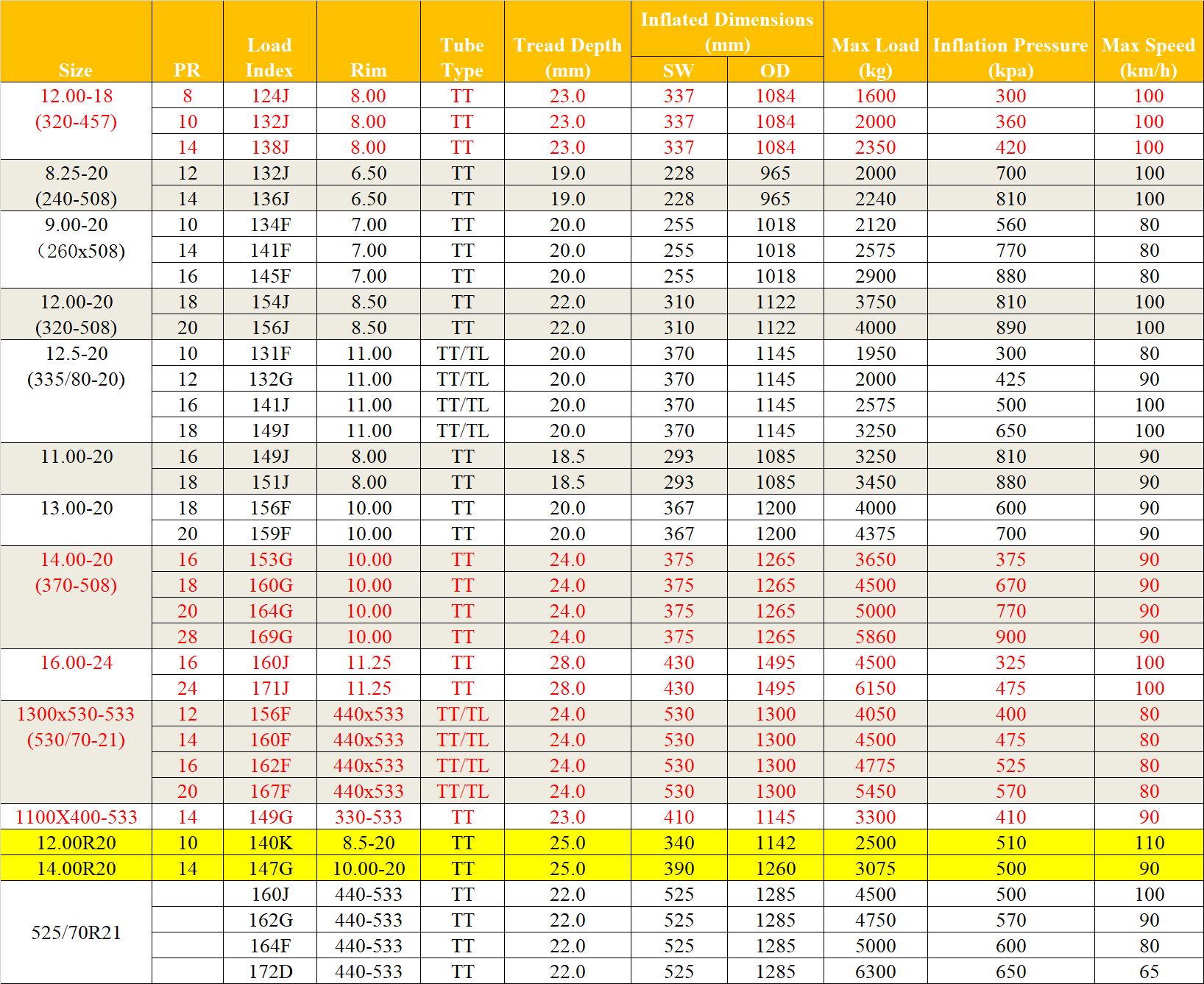 12.00-18 8.25-20 9.00-20 10.00-20 11.00-20 12.00-20 12.5-20 13.00-20 14.00-20 16.00-24 1300x530-533 1100x400-533 12.00R20 14.00R20 525/70-21 525/70R21