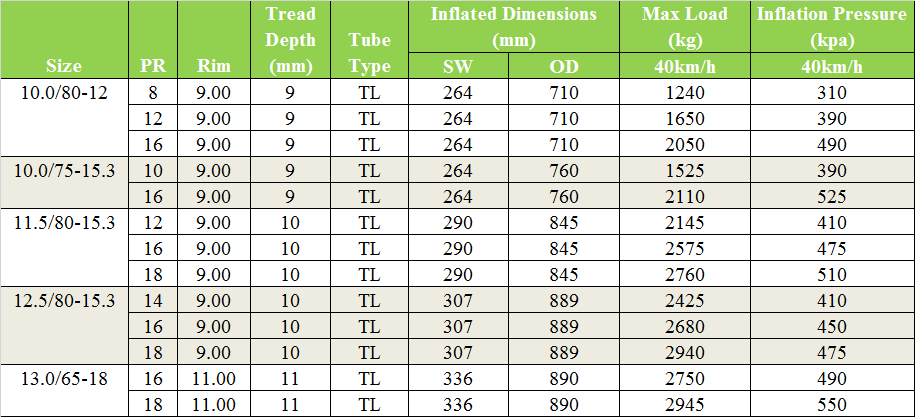 10.0/80-12 10.0/75-15.3 11.5/80-15.3 12.5/80-15.3; 13.0/65-18